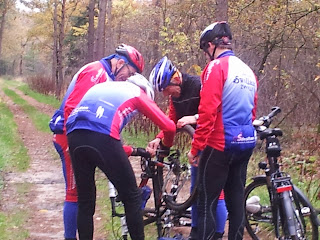 Eerst een stuk langs de Regge waar men druk bezig is met allerlei werkzaamheden en vervolgens weer de bossen in. Op een één van de bospaden, als de gang er lekker in zit, heeft Fred opeens een probleem met een tak die zich ergens in zijn aandrijving heeft genesteld. Als de tak verwijdert is blijkt dat fietsen nog steeds niet gaat omdat er een schakel van de ketting is kromgetrokken.