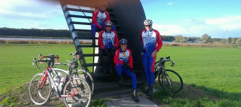 Als het om 9 uur tijd is om te vertrekken blijkt dat de meeste fietsliefhebbers zich nog een keer hebben omgedraaid in hun warme bed en met slechts 4 man gaan we op pad; Ruud W., Hans K., Arnold van B. en ondergetekende vertrekken voor een ritje naar het noorden. Mijn persoonlijke voorkeur ging uit naar een tocht door de bossen van de Veluwe met z’n fraaie herfstkleuren maar het werd dus een rit over lange, kale en koude dijken naar Blokzijl.