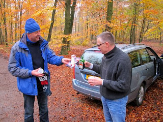 Zo gebeurde het dat we om 9.15 uur tegelijk de nog ietwat mistige en waterkoude parkeerplaats aan de rand van het Swolsebos opreden.