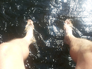 Ter hoogte van het station van Dalfsen ga ik achter Huis De Horte verder richting Hoonhorst en door naar Lenthe, daar kom ik voorbij een afwateringskanaal met fris stromend water……ik kan de verleiding even niet weerstaan en leg de fiets even terzijde om mijn warme voeten te koelen.