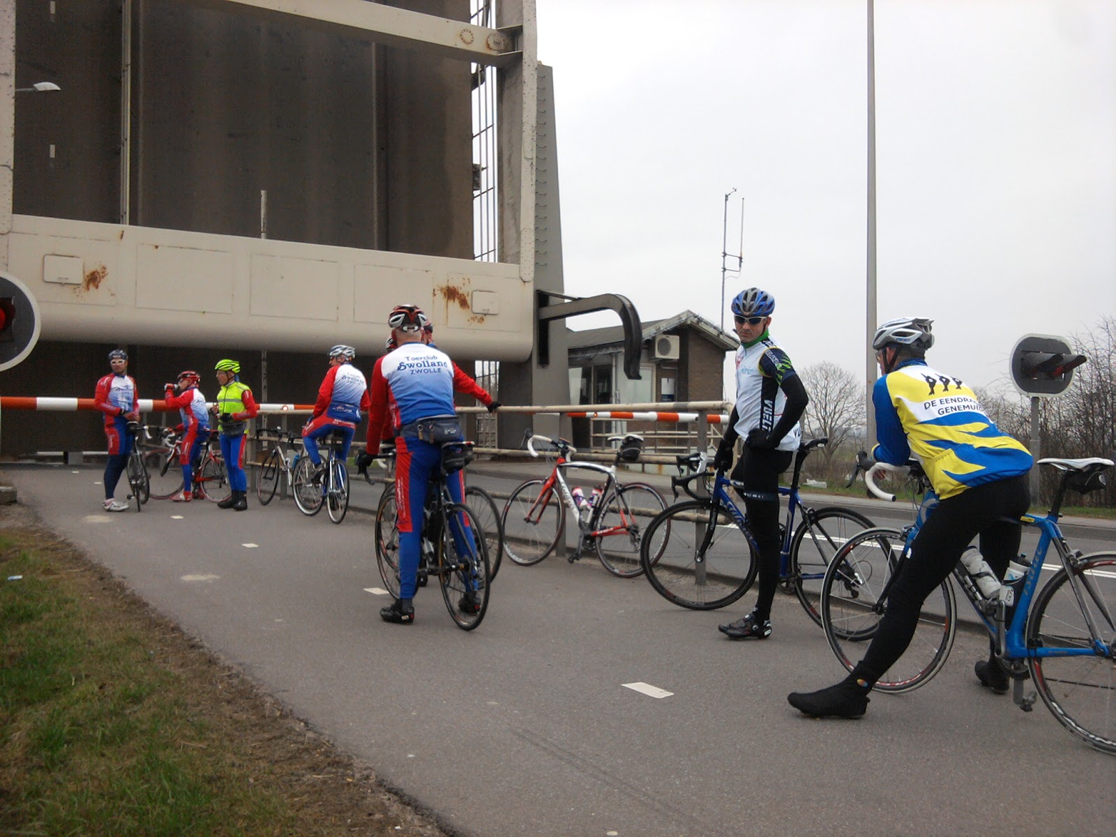 Via Blokzijl en St. janskloooster koersen we richting Zwartsluis, hier krijgen we een extra pauze omdat een containerschip er voor zorgt dat de brug een behoorlijk tijdje open staat.